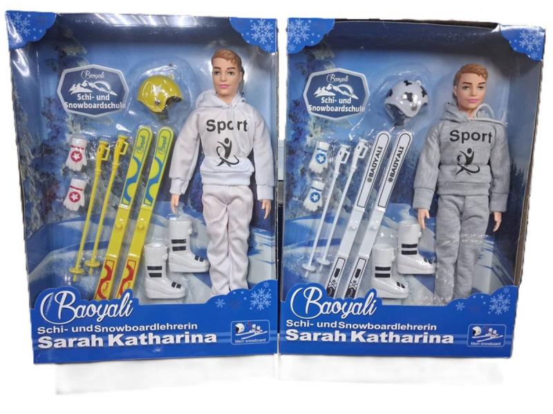 Panáček v zimním oblečení lyžař s doplňky 2 druhy
