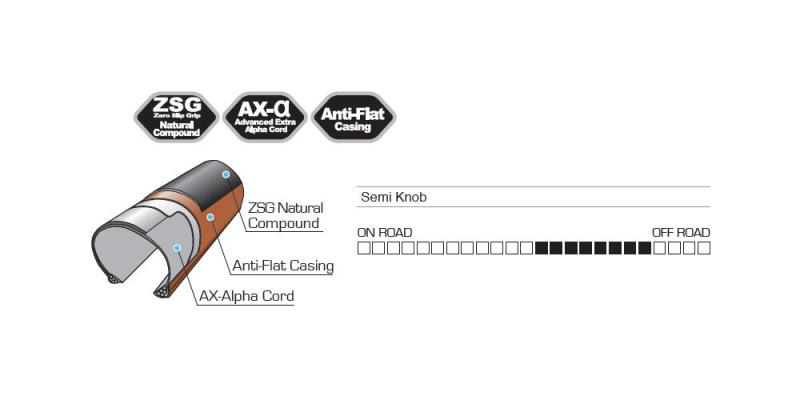 Ideální volba, když nechcete řešit zda je sucho, mokro, či kterou cestou se vydat. Technologie ZSG Natural Compound tvoří měkčí směs, která je zvnějšku překryta tvrdší směsí pro vyšší odolnost. AX-Alphacord technologie používá maximálně rovná vlákna s nejvyšší možnou hustotou pro pružnost, lehkost a zvýšení odolnosti proti defektu. Tato odolnost je dále podpořena Anti FlatCasing vrstvou po celé ploše pláště, která opět zvyšuje ochranu proti defektu.