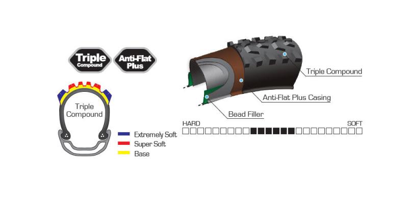 Panaracer Romero je univerzální DH a Enduro plášť s vysokou odolností proti proražení. Plášť Romero je určen do různorodých podmínek, přes prašné tratě až po mokré kořeny. Směs Tripple Compound je tvořena třemi různými vrstvami s odlišnou měkkostí a jejich rozmístěním pro maximalizaci přilnavosti a zároveň skvělou odolnost proti defektům. Zobrazit celý popis