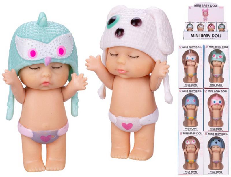 Roztomilá panenka - miminko v kalhotkách a čepici. Batole o velikosti 8cm. Čepice v podobě zvířátka. 8 variant provedení.Panenky zaručeně potěší naprostou většinu malých holčiček. Kterou holčičku by nebavila hra s panenkami? Převlékání, sehrávání scének nebo aranžování domečku pro panenky je přeci zábava! Panenka je dárek, který udělá radost každé malé slečně, princezně nebo mamince.