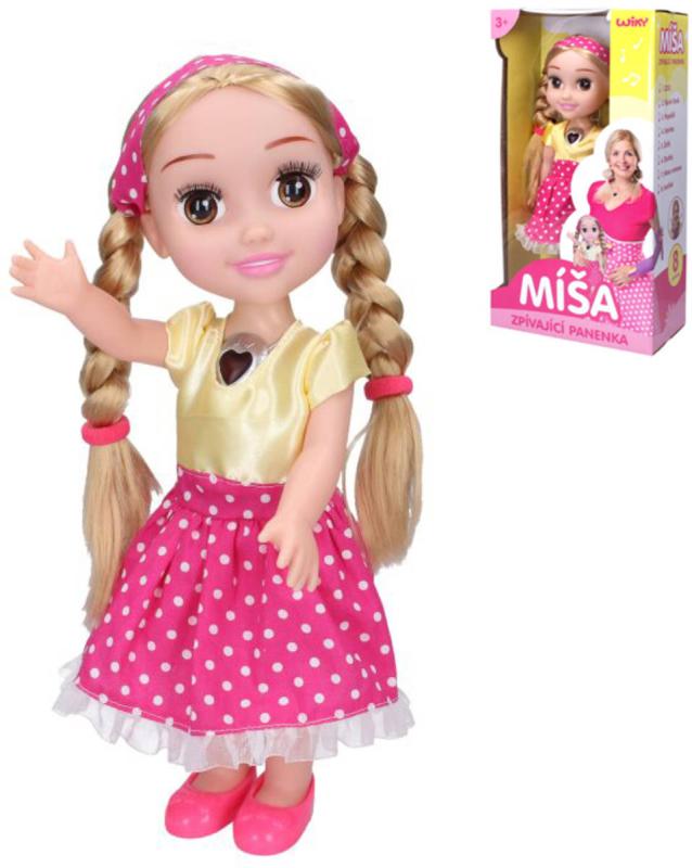 Panenka Míša Růžičková se stane tvou nejlepší kamarádkou, se kterou zažiješ spoustu zábavy a dobrodružství! Zazpívej si s ní pohádkové písničky a staň se princeznou! Hračka na baterie se světlem a zvukem. Baleno v krabici s průhledem.Stiskem srdíčka na hrudi si aktivuješ písničky. Světelné a zvukové efekty. Mluví (zpívá) česky. Přepínač vypnuto, nízká hlasitost, vysoká hlasitost. Písničky - ZOO, Sloník Toník, Popeláři, Sanitka, Zoubky, Ouky Kouky, Andílek, Ahoj školko.