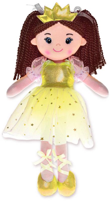 Textilní panenka Princezna Lenka o velikosti 35cm. Mluví (zpívá) česky motivy z pohádky Princové jsou na draka. Hadrová panenka, měkké tělíčko, na baterie, se zvukem.Panenka Princezna Lenka je okouzlující hračka, která přinese radost každé malé princezně. Tato panenka má měkké tělo a je vybavena funkcí zpěvu v češtině, což z ní činí ideálního společníka pro hraní a učení. Princezna Lenka je oblečena do krásných šatů a má dlouhé vlasy, které lze česat a upravovat.
