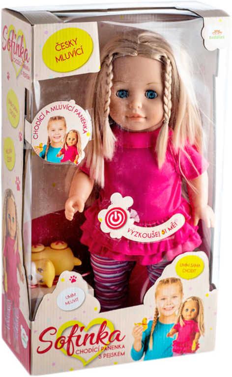 Panenka Sofinka interaktivní s pejskem na vodítku na baterie mluví česky chodí Zvuk