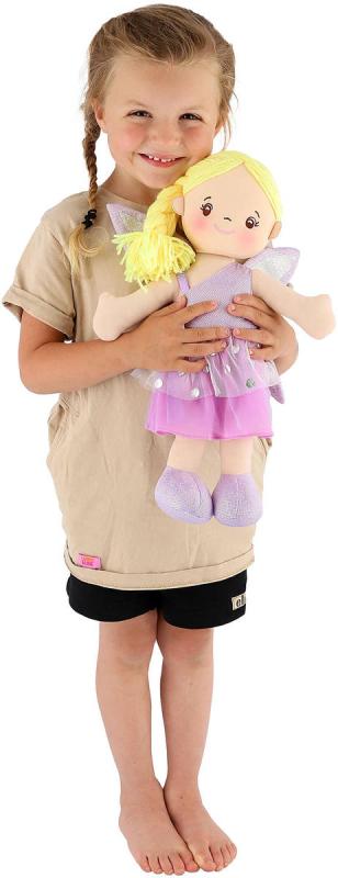 Látková soft panenka, fialová hadrová víla Fialka o velikosti 40cm, textilní, měkké tělo, s křídly.Hadrové panenky slouží nejen pro zábavu, ale také jako prostředek pro rozvoj sociálních dovedností, fantazie a jemné motoriky. K výhodám panenek patří jejich lehkost a snadná údržba. Skvělá edukační hračka pro malé holčičky. Roztomilá látková panenka s křídly bude tvou novou kamarádkou na doma i na cesty. Víla má jméno a barevné provedení podle krásné květinky.