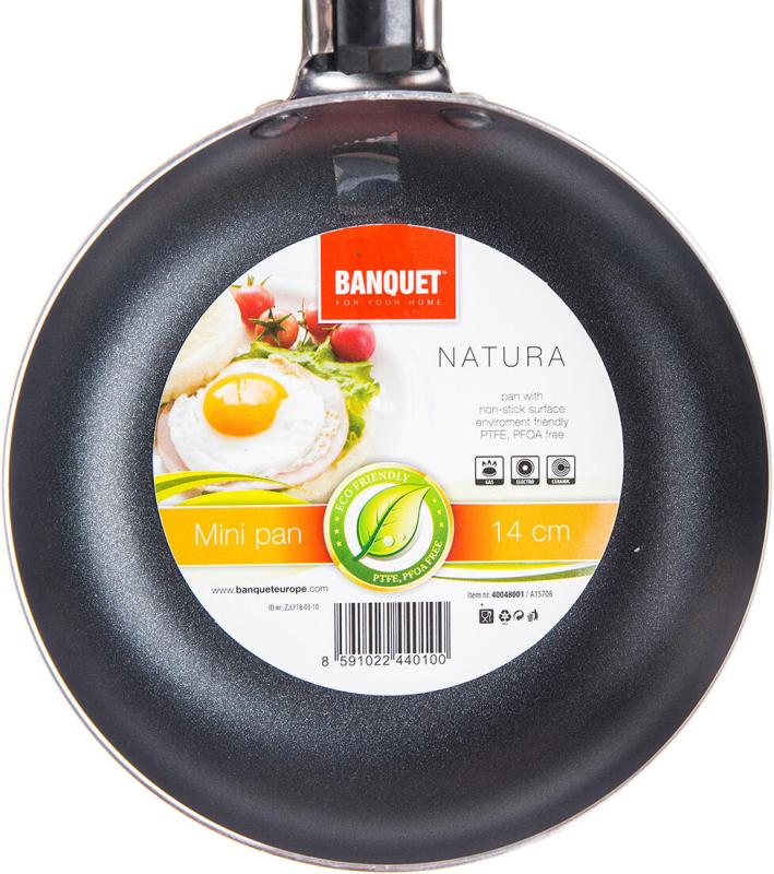Mini pánev NATURA 14 x 3 cm, nepřilnavý povrch v černé barvě.