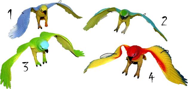 Krásně barevní papoušci na gumičce pískajícíTato plastová (gumová) zvířátka vypadají skoro jako živá. Jsou to hračky, které vaše dítě přiblíží k přírodě.
