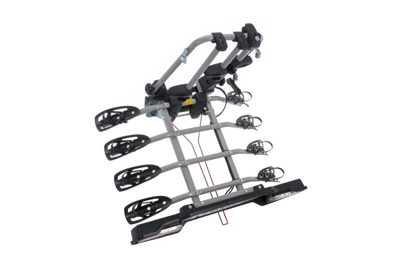 Nosič na tažné zařízení pro 4 kola. Nosič je uzamykatelný a naklápěcí. Součástí balení je držák 2., 3. a 4. kola. Zobrazit celý popis