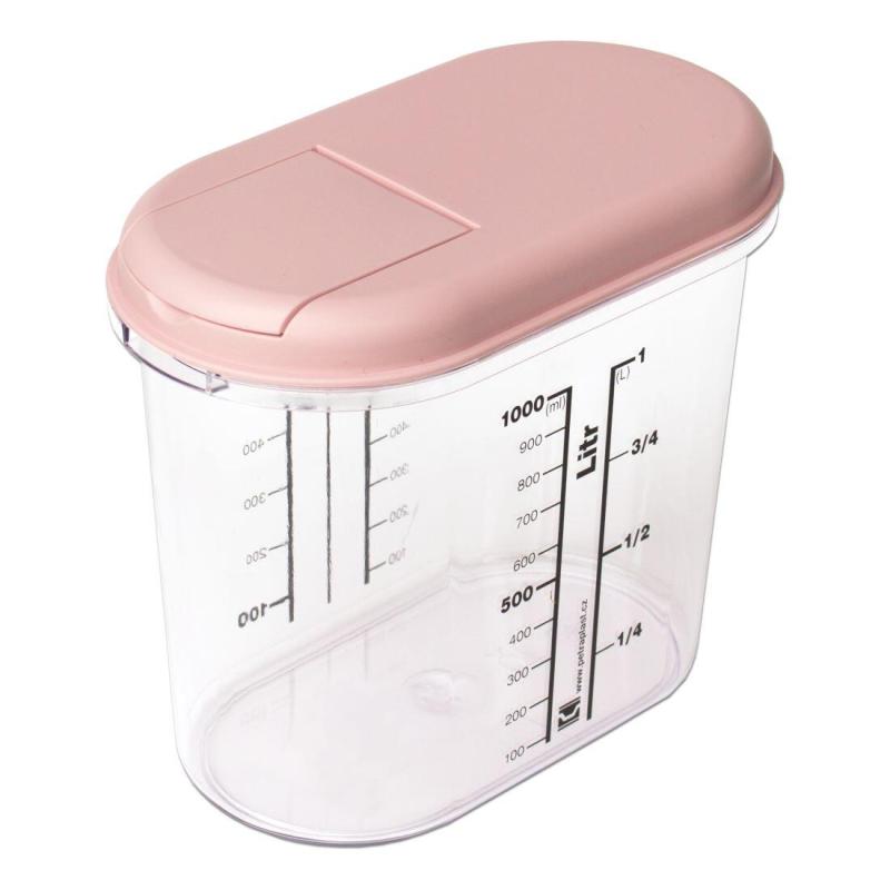 Dóza na sypké potraviny 1 l, oválná s potiskem, PH mix barev, otevírací víčko.objem: 1 l