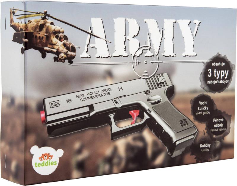Nabít, zamířit, pálit a užívat si skvělou bitvu. Vysokou dávku adrenalinu a zároveň skvělou úroveň bezpečnosti zaručuje dětská pistole Teddies. Díky nízké hmotnosti plastového materiálu nebude držení náročné ani pro děti. Nabízený typ dětské pistole se může pochlubit přesností, snadným nabíjením a dostatečně dlouhým dostřelem. S vyndavacím zásobníkem je umožněno střílet náboje postupně. Tato dětská pistole nabízí hromadu variací pro hru, díky čemuž jen tak neomrzí. Designové ztvárnění podtrhuje černá barva. Tato dětská zbraň je ideální pro děti od 8 let. Ať už jste vy či děti nováčky ve hře s pěnovými náboji, nebo již ostřílení matadoři, pistole zajistí neopakovatelnou atmosféru a pořádnou dávku zábavy.