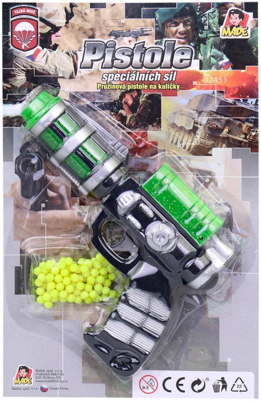 Pistole speciálních sil dětská plastová zbraň na kuličky set s náboji 100ks