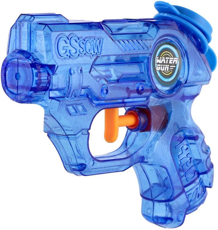 Pistolka dětská vodní barevná stříkací 11cm průhledná na vodu 2 barvy