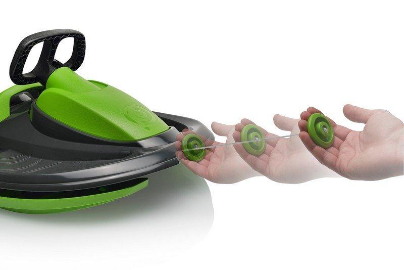 Vďaka diferenciálu sa zatáča jednoducho a rýchlo, pretože každá lyža môže zatočiť pod iným uhlom, čo zlepšuje ovládateľnosť a stabilitu v zákrutách. Stredová brzda s pružinou zabezpečuje rýchly návrat do pôvodnej polohy a umožňuje bezpečné zastavenie. Ťahacie lano je vybavené automatickým navíjacím mechanizmom, ktorý uľahčuje manipuláciu a skladovanie.