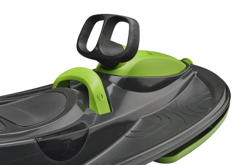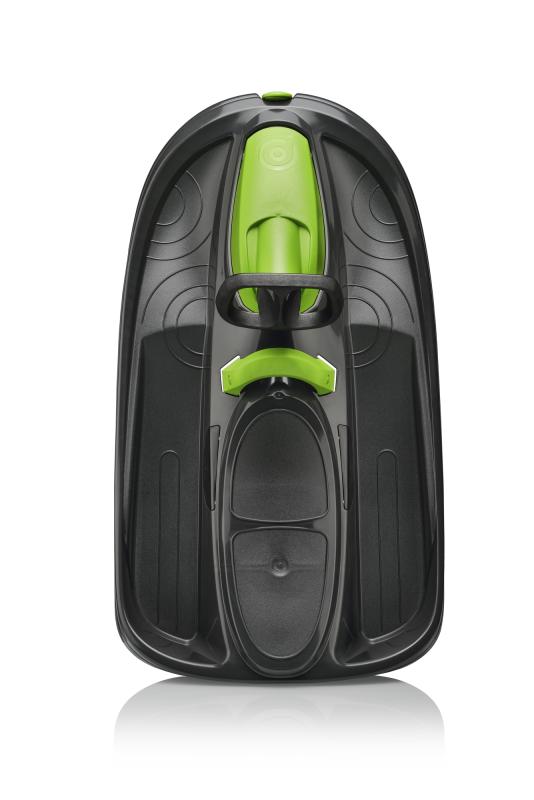 Stylový design závodní formule. Středová brzda pro větší bezpečí. Originální provedení se čtyřmi lyžinami. Zaručuje snadné zatáčení. Zatáčení pomocí diferenciálu zvyšuje rychlost v zatáčkách, protože každá lyže může zatočit pod jiným úhlem. Samonavíjecí mechanismus tažného lana. Masivní brzda s pružinou pro navrácení do původní polohy. Žádné kovové prvky ani šrouby, nemusíze mít obavu z koroze a montáž není nutná. Možnost jízdy ve 2 lidech. Zobrazit celý popis