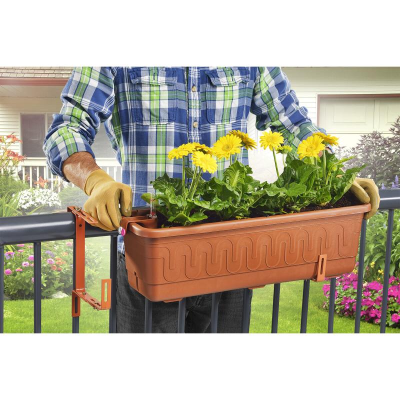 Samozavlažovací truhlík Fantazie Smart je plastový truhlík v klasickém stylu se zavlažovacím systémem. Nabízíme ho ve dvou tradičních barevných provedení, a to hnědé a terakotové barvě, kdy po stranách má truhlík dekor vlnovky. Na dně truhlíku se nachází vyvýšené vyjímatelné dno, které slouží jako zásobník vody pro rostliny a zároveň se jím dostává vláha ke kořenům. Součástí balení je nalévací trubička s ukazatelem hladiny vody v květináči (díky dvoukomorovému provedení měří hladinu vody i při nalévání) a datumovkou, na které si můžete nastavit datum poslední zálivky nebo hnojení. Hlavní výhodou samozavlažovacího truhlíku je, že ho jednorázově naplníte vodou a pak není nutné několik dní rostliny zalévat (záleží na ročním období). Truhlík Fantazie Smart je vyrobený z pevného plastu a je vhodný pro pěstování rostlin uvnitř i venku. Na dně truhlíku je možnost vyvrtat přepadový otvor pro přebytečnou dešťovou vodu, pokud truhlík používáte venku. Parametry:Fantazie Smart 40Délka: 40 cmŠířka: 19 cmVýška: 18 cmFantazie Smart 60Délka: 60 cmŠířka: 20 cmVýška: 18 cmFantazie Smart 80Délka: 80 cmŠířka: 20 cmVýška: 18 cmFantazie Smart 100Délka: 100 cmŠířka: 20 cmVýška: 18 cm8595096990646135