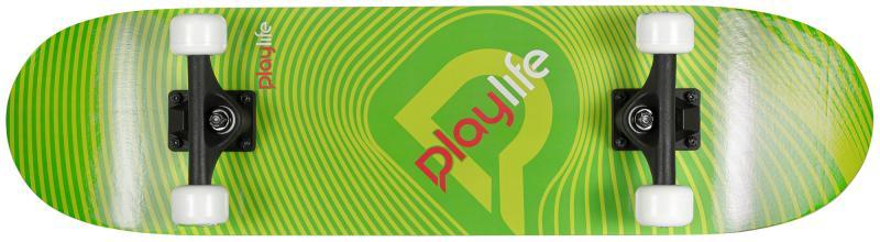 Skateboard Playlife Illusion Green 31x8" -standardní dřevěné prkno, široké a stabilní, skvěle tvarované pro začátečníky a budoucí šampiony.Kompozitový truck je vyztužený skleněnými vlákny a je silný a odolný, začátky tak budou opravdu jednoduché. Ložiska a kolečka jsou také odolné, takže se nejedná o board na jednu sezonu.4040333531105617