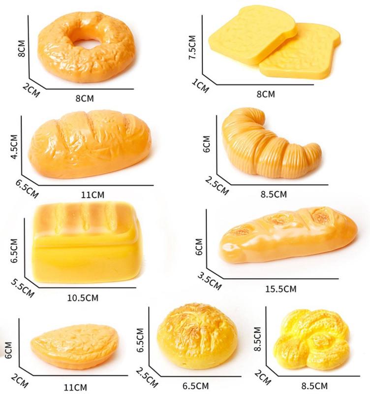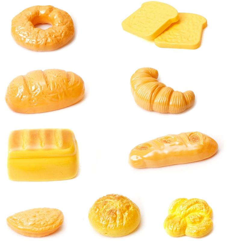 Různé druhy pečiva rozšiřují možnosti hry a umožňují dětem hrát si na různé situace (snídaně, svačina, návštěva pekárny).