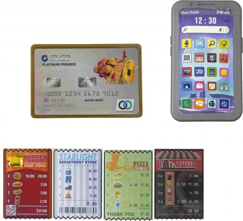 Plať kartičkou: Jasně, že k němu patří kartičky, jako ty, co mají mamka s taťkou! Jen je zasuneš nebo přiložíš a zaplaceno.