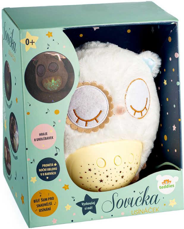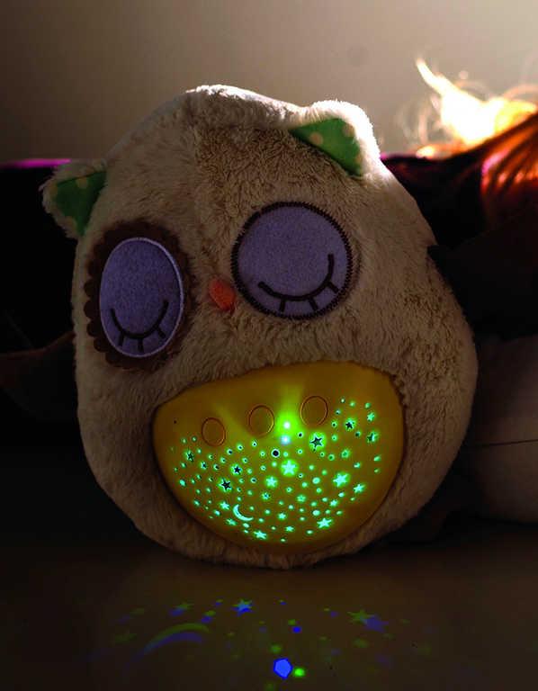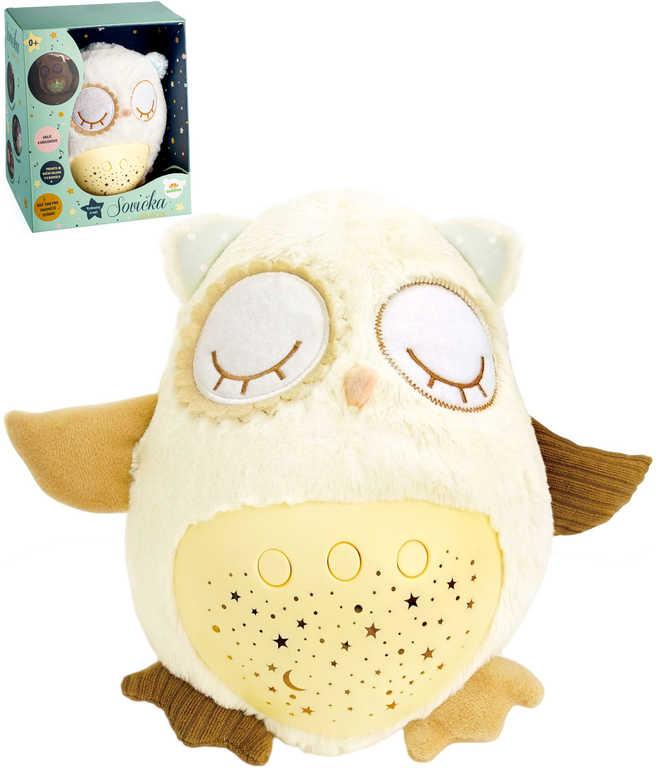 PLYŠ Baby sovička usínáček 25cm projektor na baterie Světlo Zvuk pro miminko
