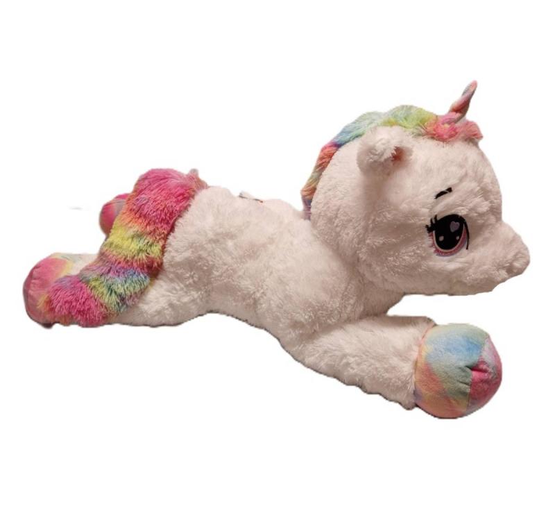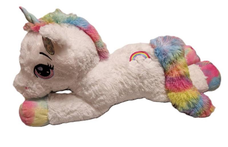 PLYŠ Jednorožec plyšový ležící 80cm - bílý s duhovými doplňky (plyšová hračka)