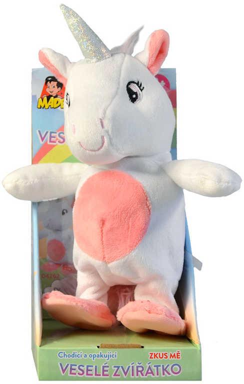 PLYŠ Koník jednorožec 23cm opakuje slova chodí na baterie Zvuk