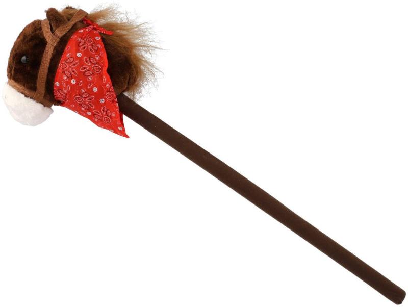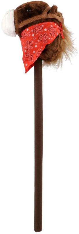PLYŠ Kůň hnědý na tyči 80cm koňská hlava na baterie v sáčku Zvuk