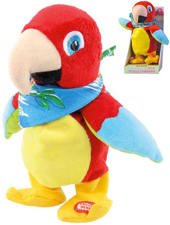 PLYŠ Papoušek s šátkem 22cm opakuje slova chodí na baterie Zvuk