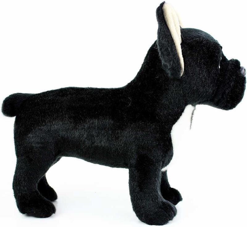 Rozkošný plyšový psík buldoček nesmí chybět v žádném dětském pokojíčku! Stojící francouzský pejsek buldog (bulldog) je vyroben z exkluzivní, velmi kvalitní plyše a jeho délka je cca 30cm. Tento senzační plyšový kousek je ideální i jako dárek!Tato hračka spadá do exkluzivní kolekce plyšových hraček. Od opičáka, přes papouška až po klasické pejsky a naježené kočky … produkty této kolekce jsou vyrobeny z velmi kvalitní plyše.