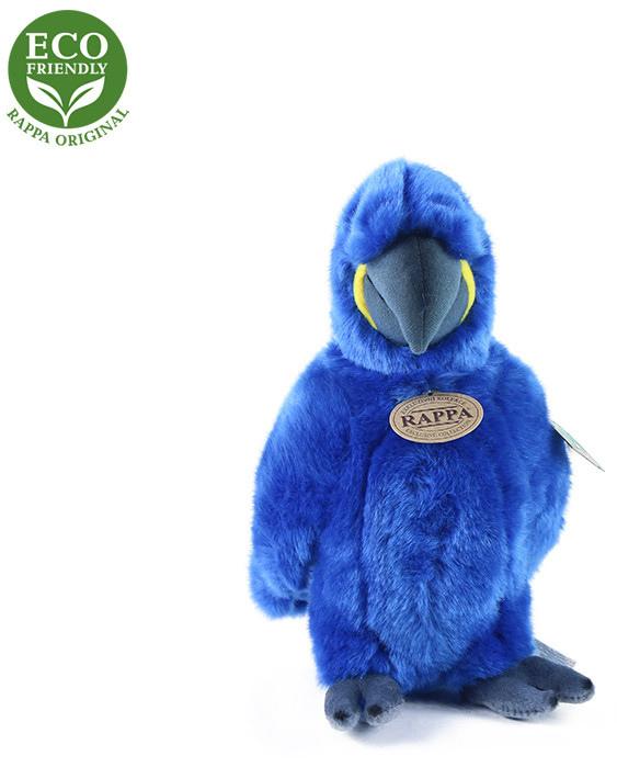 Krásný modrý pták papoušek z plyše, věrně zpracované zvířátko, s ekologickou výplní uvnitř, pro všechny milovníky plyšáků. Ara Haycintový.ECO-FRIENDLY výrobek - výplň plyšové hračky je vyrobena z recyklovaných PET lahví. Tento materiál je zcela bezpečný, na omak nerozeznatelný od standartní výplně a plně atestovaný pro bezpečnost i těch