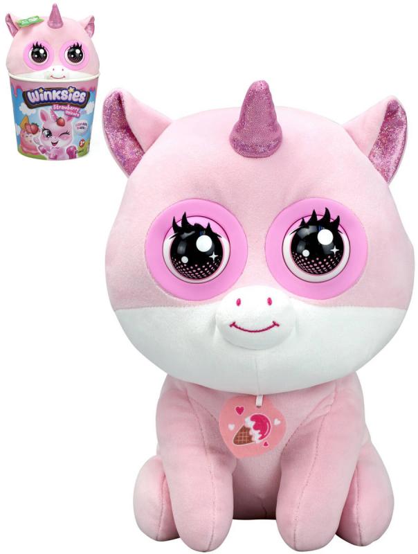 Interaktivní zvířátko plyšový mazlíček Winksies Strawberry Unicorn ve zmrzlinovém kelímku. Reaguje na doteky - mrká očima. Jednorožec na baterie, se zvukem.Winksies je plyšová hračka s interaktivními funkcemi. Objímejte je nebo pohlaďte Winksies po hlavě a jejich oči budou mrkat jako opravdové! Winksies jsou veselí mazlíčci - zvířátka která vydávají různé zvukové efekty a melodie. Jemně pohlaďte hračku po hlavičce a její oči zamrkají. Vložte Winksies do tematického kelímku na zmrzlinu, aby hračka vypadala legračně a roztomile.