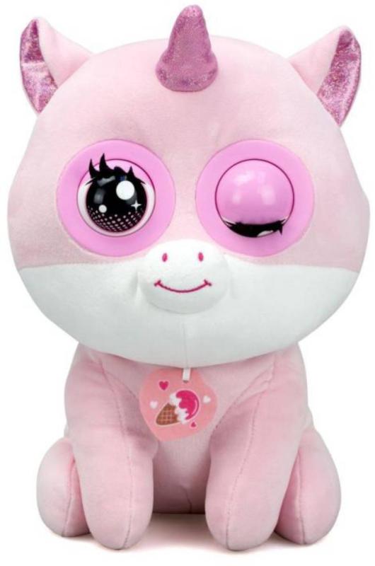 Winksies je plyšová hračka s interaktivními funkcemi. Objímejte je nebo pohlaďte Winksies po hlavě a jejich oči budou mrkat jako opravdové! Winksies jsou veselí mazlíčci - zvířátka která vydávají různé zvukové efekty a melodie. Jemně pohlaďte hračku po hlavičce a její oči zamrkají. Vložte Winksies do tematického kelímku na zmrzlinu, aby hračka vypadala legračně a roztomile.