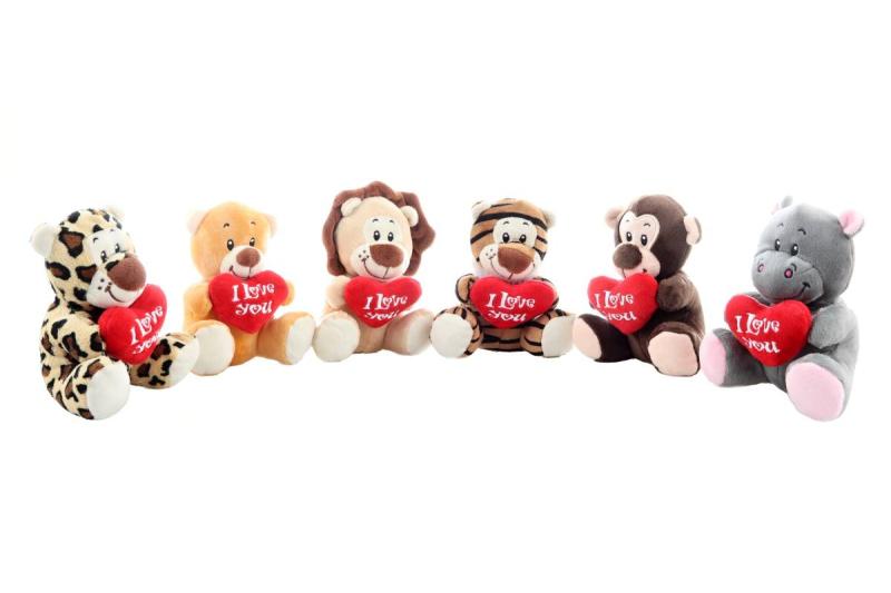 Plyšové divoké zvířátko se srdíčkem I Love You o rozměrech cca 14x13x11 cm. 6 druhů