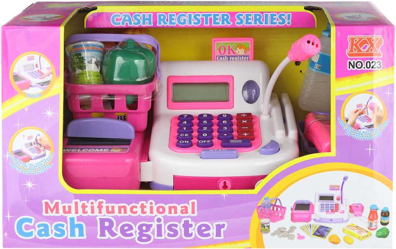 Registrační pokladna pro malé prodavače nesmí chybět v žádném dětském pokojíčku, školce nebo dětské herně. Pokladna s LCD displejem, snímačem čárového kódu a otevírací zásuvkou na mince je vyvedena v líbivé bílé, růžové a fialové barvě. Nezbytnou součástí sady je také nákupní košík, několik kusů zboží a peníze. Aby hra byla ještě více zábavná, vydává hračka reálné zvukové efekty. Děti se
