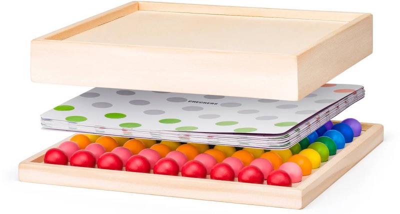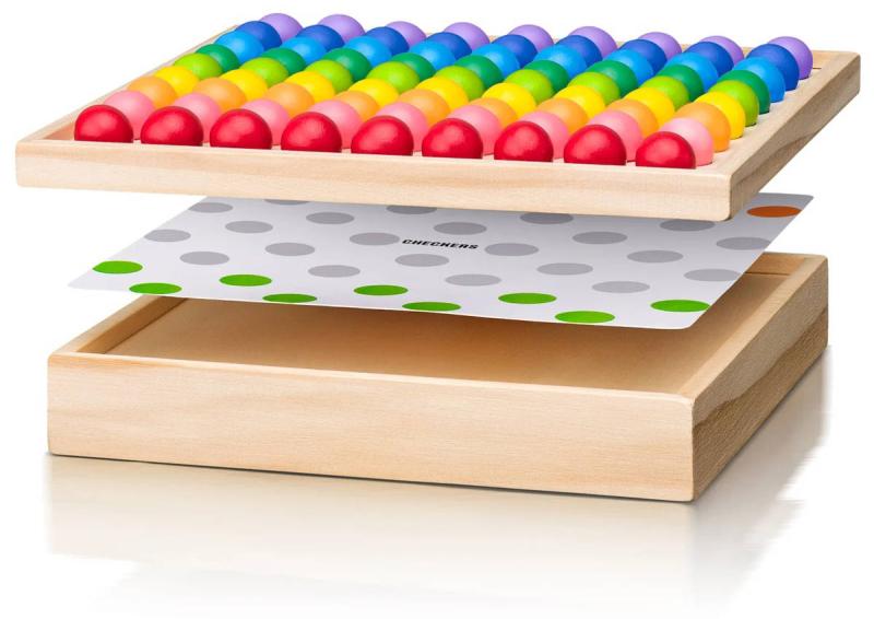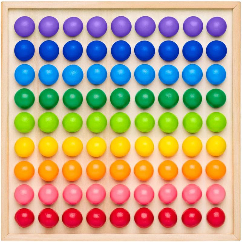 Motorická hra s barevnými kuličkami v barvách duhy, kombinovaná se souborem jednoduchých společenských her. Děti si staví obrázky dle předlohy, kuličky si však mohou vrstvit na sebe a vytvářet malé pyramidy. Plánky pro jednoduché společenské hry jako je Člověče, nezlob se, Piškvorky, Dáma, Sudoku a Šipky jsou součástí.Barevné sudoku:
