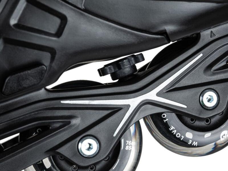 • Plastový skelet zajišťuje spolehlivou oporu, zabraňuje propadání kotníků a ztrátám energie při bruslení a také chrání brusli proti poškození.