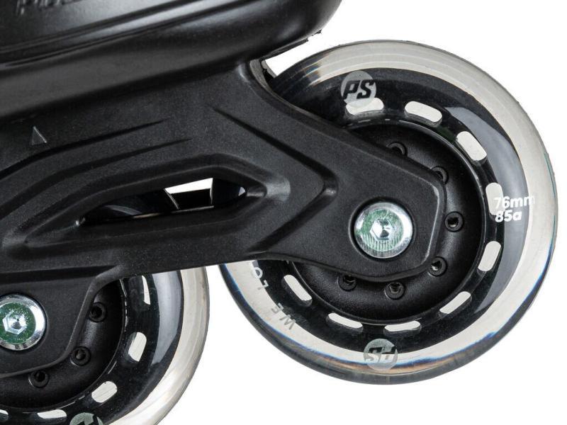 • Kolečka jsou zde použita Powerslide One s tvrdostí 85A a průměrem velikostí v rozmezí 64-76mm dle velikosti brusle.