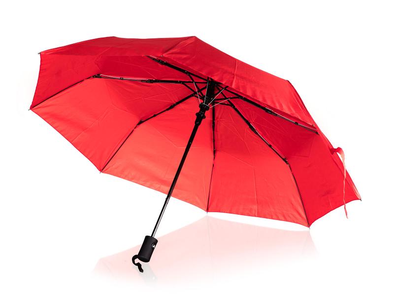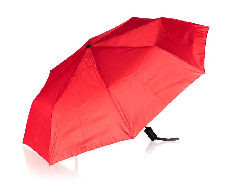 Skládací deštník 52 cm, v červené barvě, slouží k ochraně proti dešti a přímému slunci.