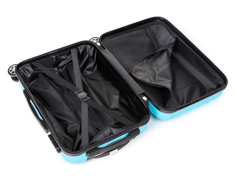 Uvnitř najdete látkovou dělící přepážku s kapsou, která pomáhá udržet pořádek, a křížové upínání, které zajistí pevné uspořádání obsahu kufru a zabrání posunu věcí během cesty.