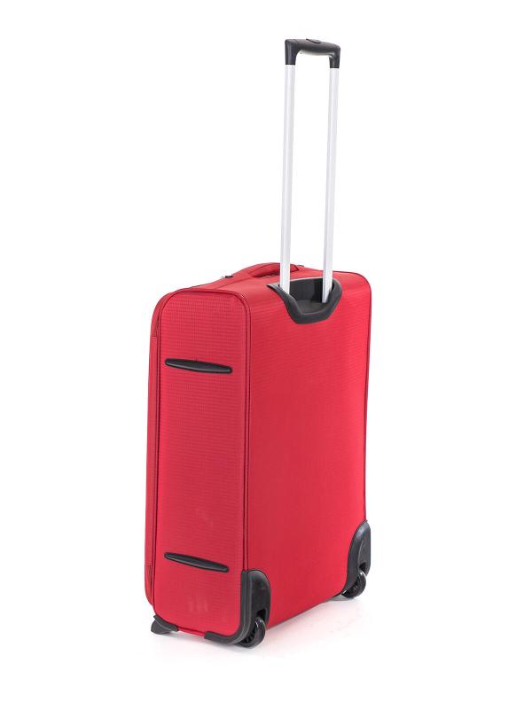 Materiál kufra tvorí odolná textília, ktorá vďaka svojej pružnosti umožňuje mierne prispôsobenie priestoru podľa obsahu. Pohyb uľahčujú dve kolieska a teleskopická rukoväť so zámkom proti zasunutiu, ktorú možno nastaviť do viacerých výškových polôh podľa potreby používateľa.