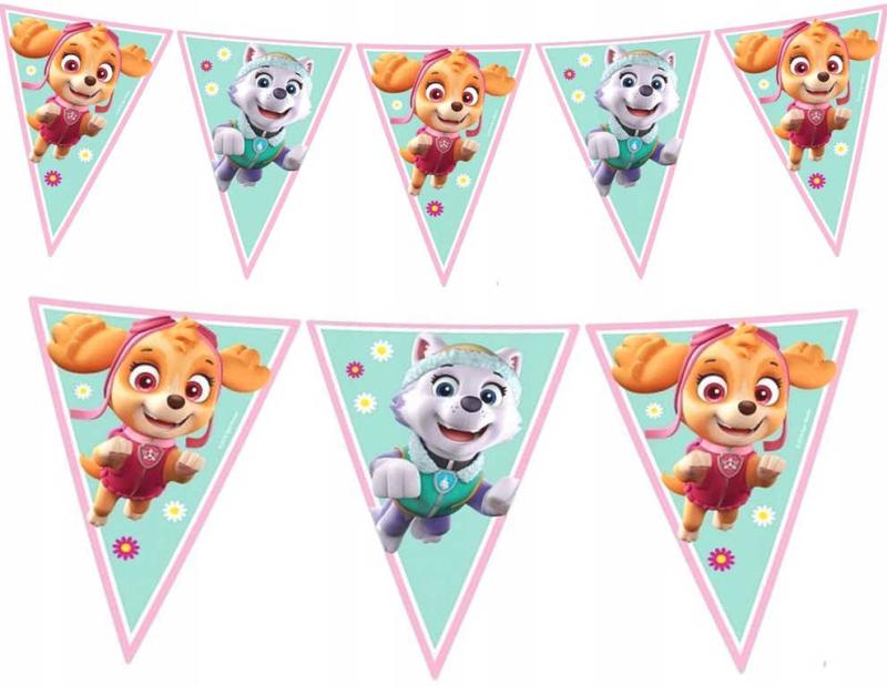 Skye a Everest vás vezmou na báječnou cestu Tlapkové patroly. Vlaječková girlanda se bude hodit na každou dětskou oslavu! Pastelové barvy jsou jemné, ale velmi elegantní! Široký banner