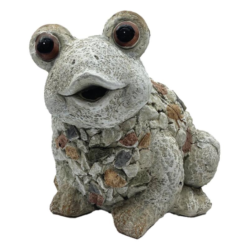 Žába MG design kamínkyBaculatá žába s velkýma očima a tělem z kamínků je neodolatelným a zábavným prvkem, který přinese do vaší zahrady hravost a originalitu.Její výrazné oči a kamenné tělo vytvářejí vtipný kontrast, který okamžitě přitahuje pozornost a dodává prostoru lehkost a radost.Parametry Žáby cm:materiál figurky: magneziumbarva: šedá / hnědározměr: 30 x 30 x 30 cmhmotnost: 2,4 kgvhodné do zahrady
