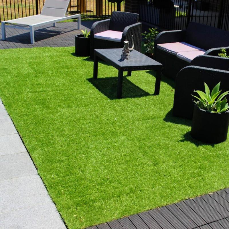 Snadná údržba: Tyto venkovní dlaždice z umělé trávy o rozměrech 30 x 30 cm se snadno montují, skladují a čistí a samozřejmě nepotřebují vodu ani údržbu.
