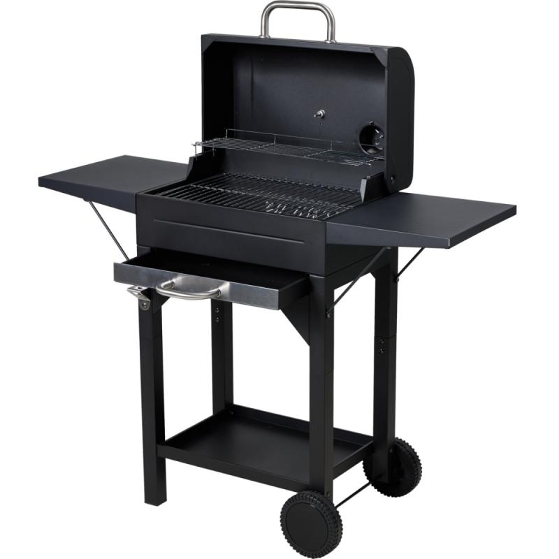 • Praktické použití: Jednoduché ovládání a údržba díky integrovanému popelníku a bočním stolům pro pohodlnou práci během grilování.