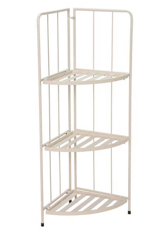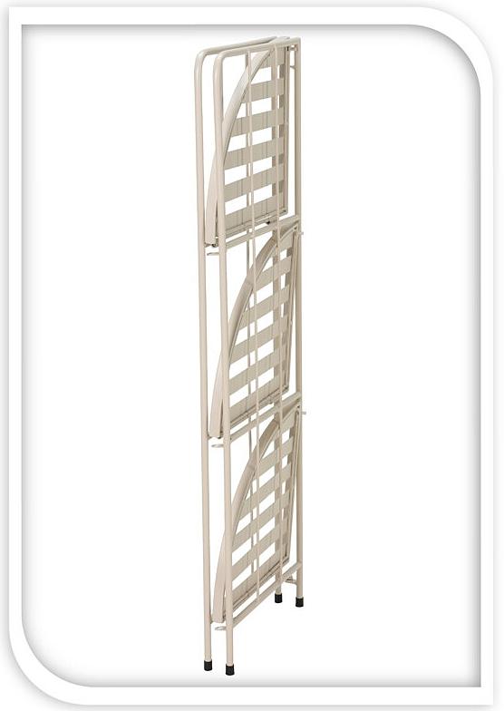 Stojan má pevnou konstrukci na ocelových nohách, které zaručují stabilitu a zabraňují kývání. Disponuje třemi rohovými policemi, které jsou navíc sklopné, takže si můžete snadno přizpůsobit prostor podle potřeby. Díky možnosti složení na plocho je manipulace a uskladnění velmi jednoduché.