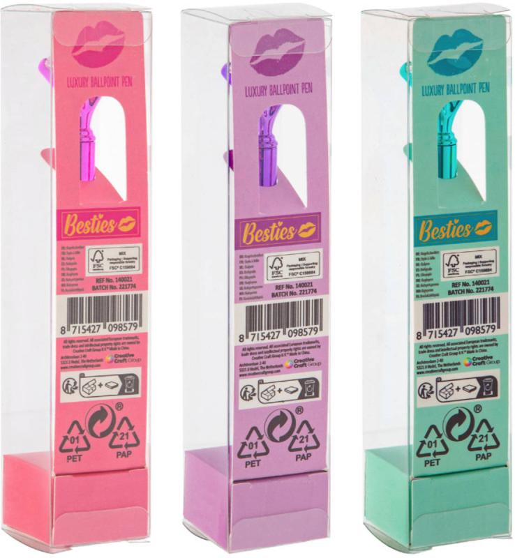 Luxusní kuličkové propisovací pero Besties ozdobené "drahokamem" – modrá náplň. Ve třech barevných variantách. Baleno v průhledném plastovém obalu.Luxusní propiska od Besties s lesklým fialovým, azurově modrým nebo růžovým vzhledem a velkým "diamantem" na jeho horní části. Pište stylově!