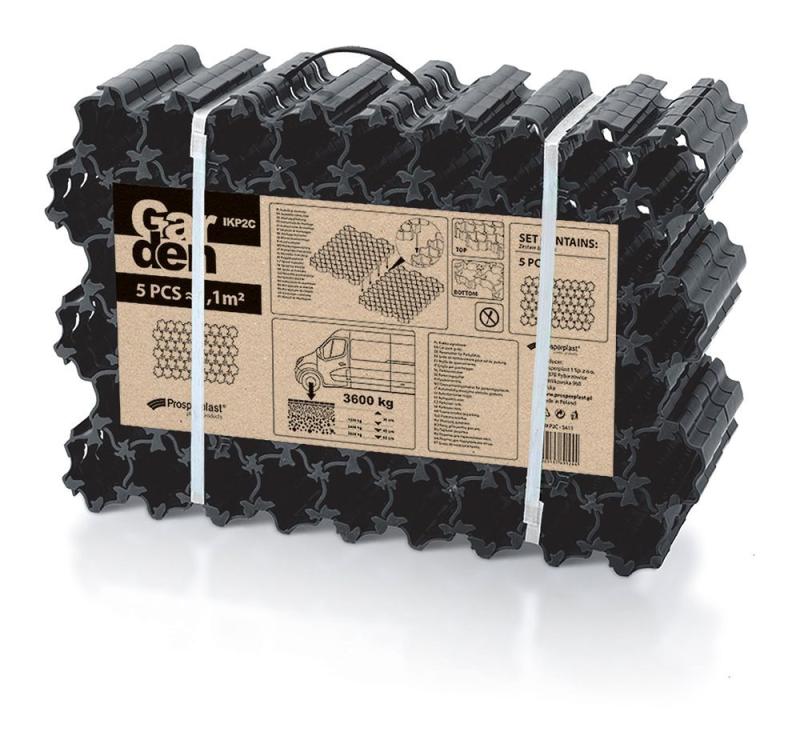 Speciální dlaždice Prosperplast PLANT jsou vhodné pro zatravňování ploch. Využijete je ovšem i při zpevňování příjezdových cest, které jsou náchylné k tvorbě bláta a vyjetých kolejí. Zasazená tráva poroste otvory v dlaždici. Zajistí vám přirozený vzhled dvora či chodníků na zahradě. Maximální zatížení dlaždic je 3600 kg.