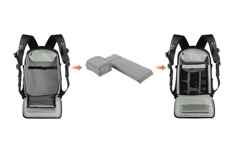 Batoh je navržen tak, aby vám umožnil optimální organizaci prostoru. Je vybaven množstvím kapes, včetně těch na zip. Najdete v něm také odnímatelné pěnové vložky o průměru 1 cm, pomocí kterých můžete vytvořit přihrádky libovolné velikosti. Tímto způsobem si můžete vnitřní prostor batohu přizpůsobit svým představám a usnadnit si udržování pořádku!