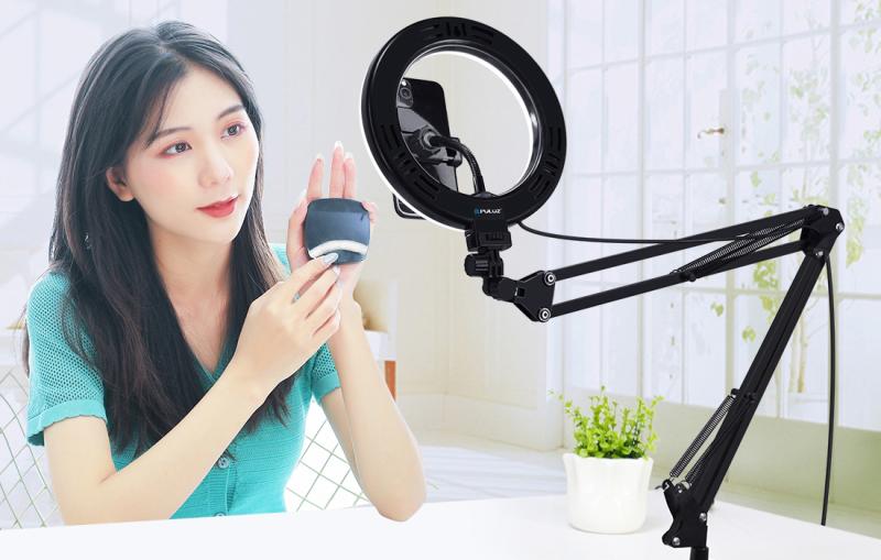 Puluz Stojan na rameno stolního počítače s 26cm LED Vlogging Ring PKT3090B