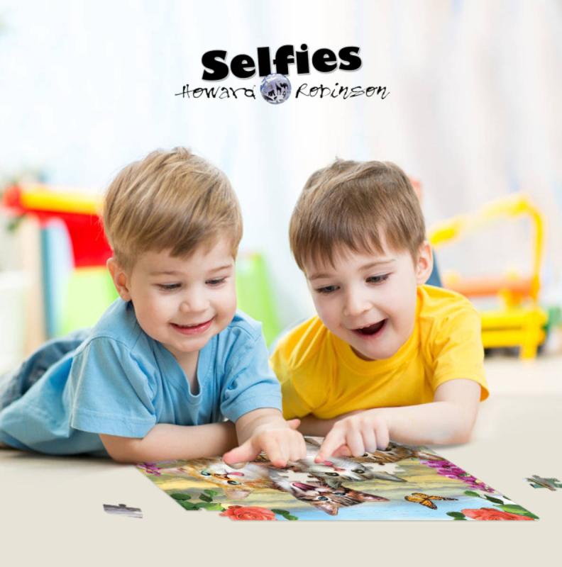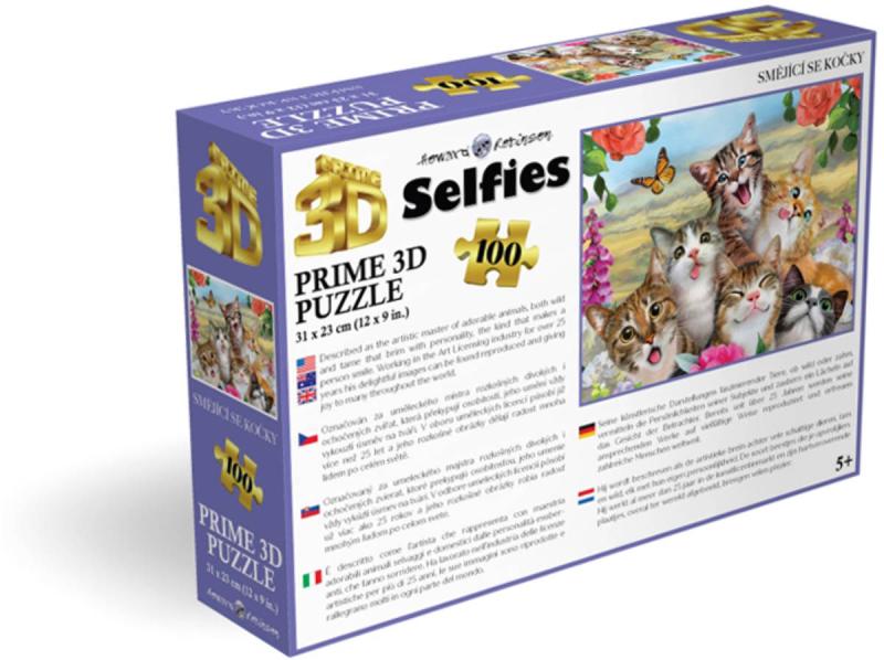 3D Puzzle skládačka s motivem "Smějící se kočky (selfie)". Rozměr motivu 31 x 23cm, 100 dílků.