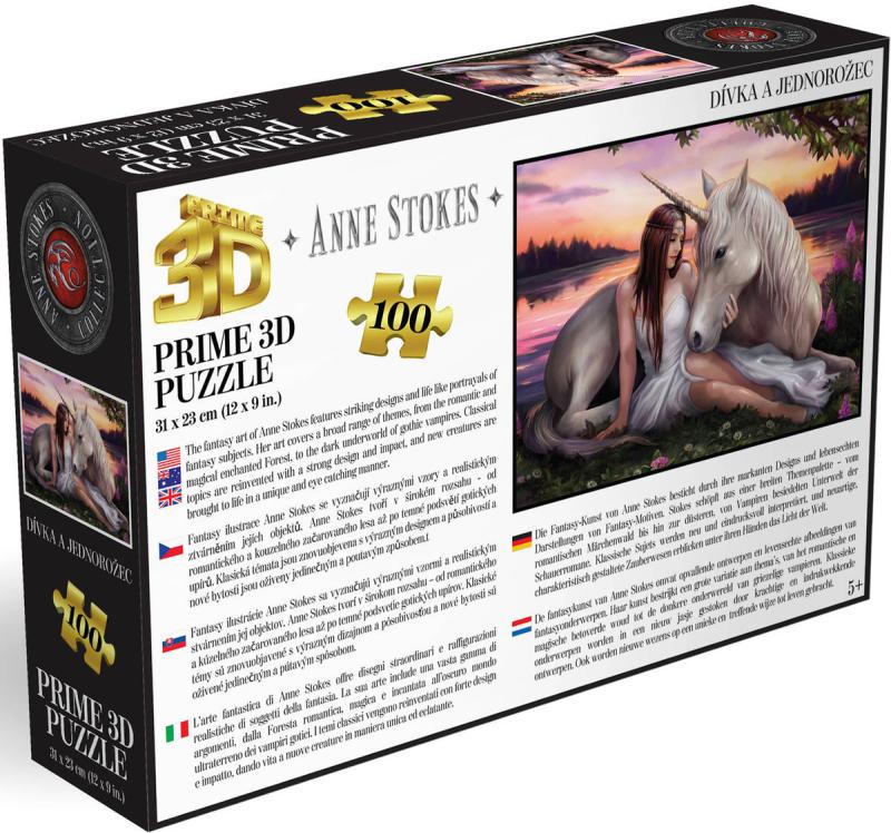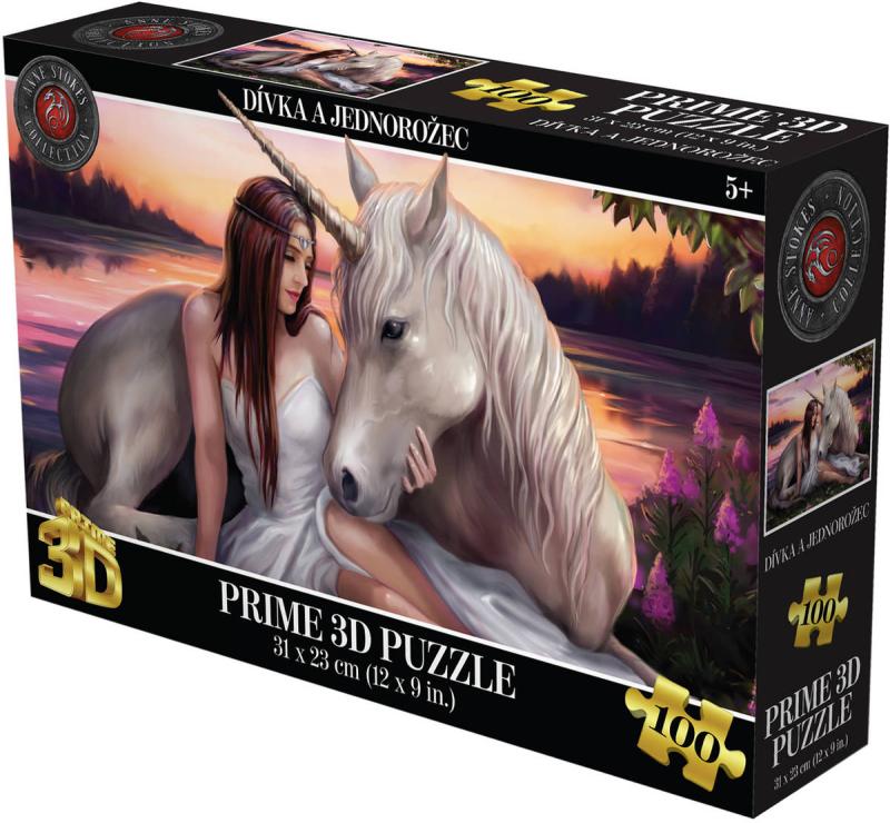PUZZLE Prime 3D Dívka a jednorožec 31x23cm 100 dílků holografické