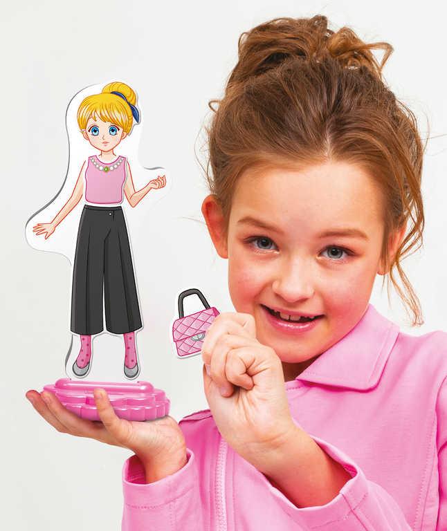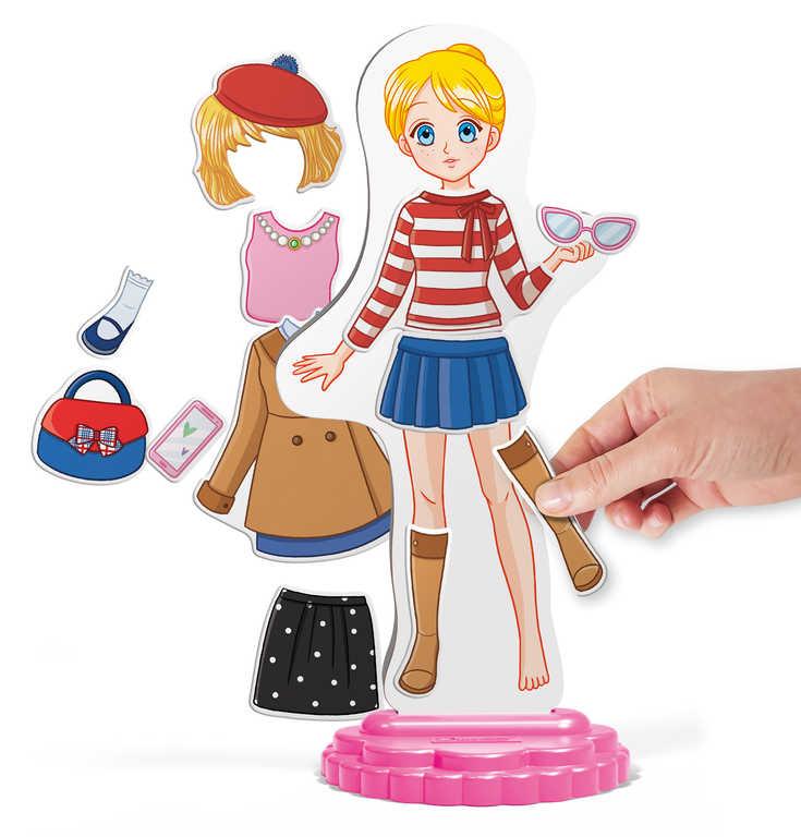 Obsah balení: magnetická převlékací panenka, stojánek na panenku. 29 magnetických kusů oblečení